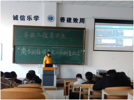 我院市政工程系于12月9日下午在阶梯教室102举办题为“现代无人机测量技术”的学术报告,由南方测绘(沈阳)有限公司肇丹丹部长主讲。