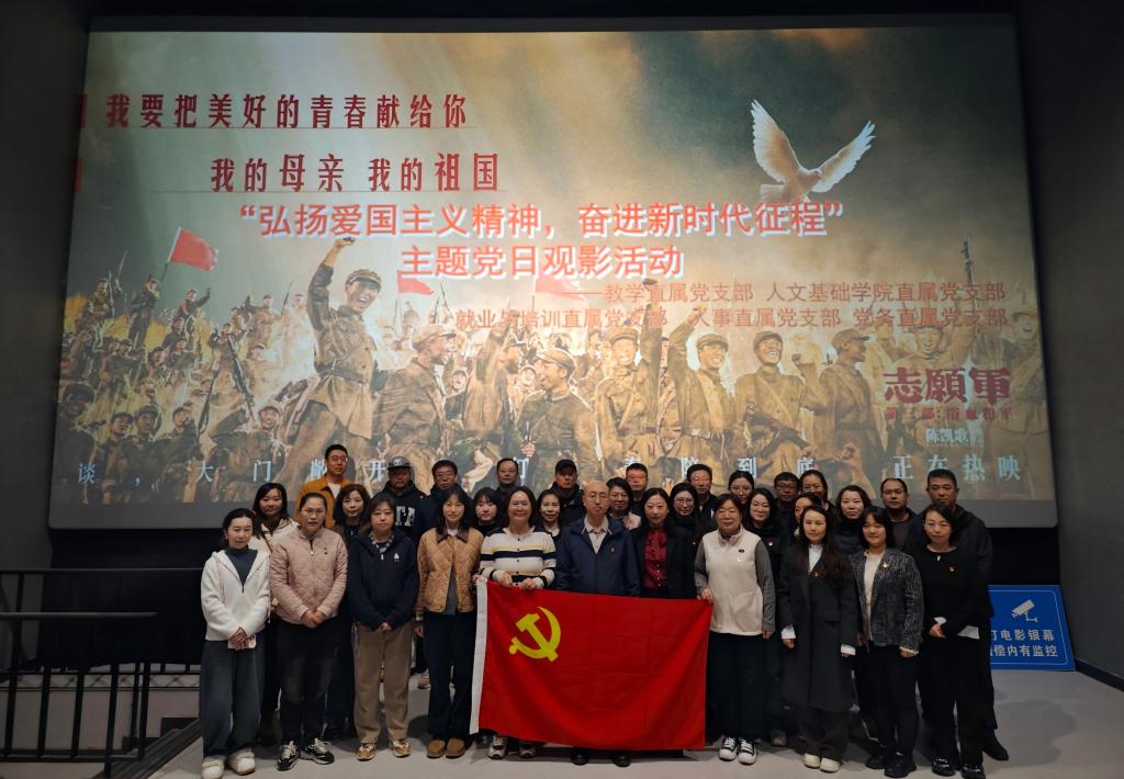 为弘扬伟大抗美援朝精神,传承红色基因,厚植爱国主义情怀,近日,教学直属党支部联合党务直属党支部、人事直属党支部、就业与培训直属党支部、人文基础学院直属党支部,共同开展“弘扬爱国主义精神,奋进新时代征程”主题党日观影活动,组织全体党员集中观看爱国主义影片《志愿军:浴血和平》。学校党委副书记、院长徐长伟参加活动。