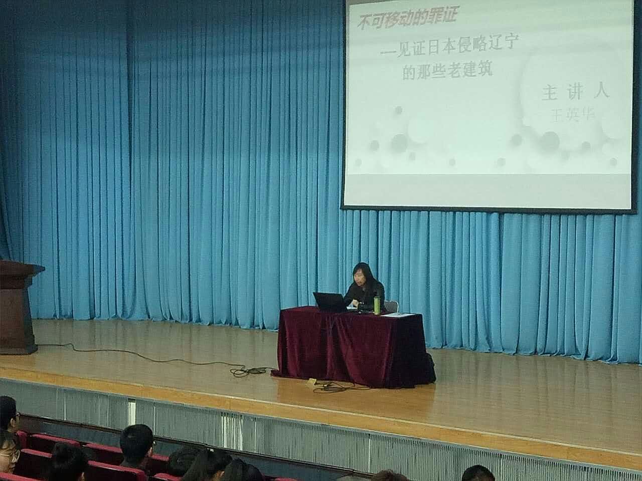 2017年3月31日,思想政治教学部王英华老师在学院报告厅作了题为“不可移动的罪证 ----见证日本侵略辽宁的那些老建筑”的形势与政策主题报告。