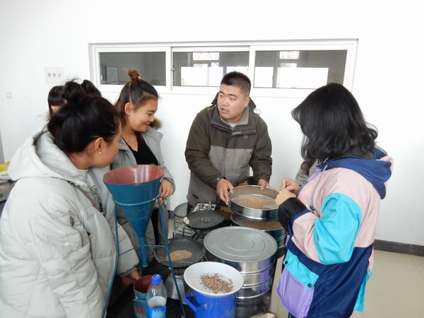 钱增老师为学生做砂石实验指导