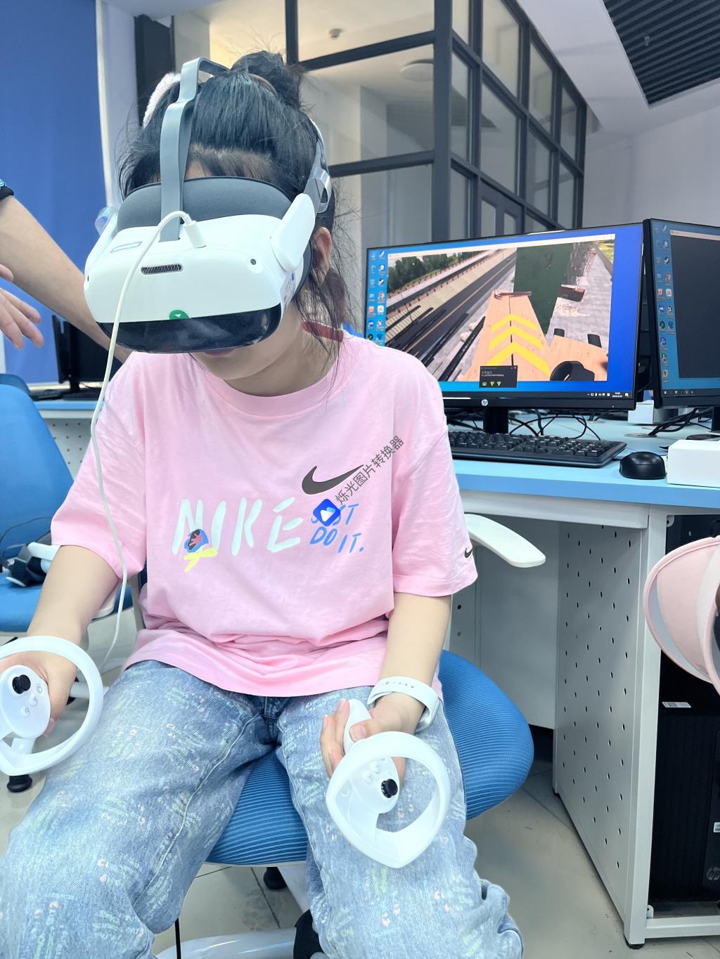 通过VR虚拟仿真实操让孩子们身临其境的感知绿色建筑的魅力。不但激发了孩子们的学习热情,也让孩子们对“城市建设工程探秘”产生了更为浓厚的兴趣。