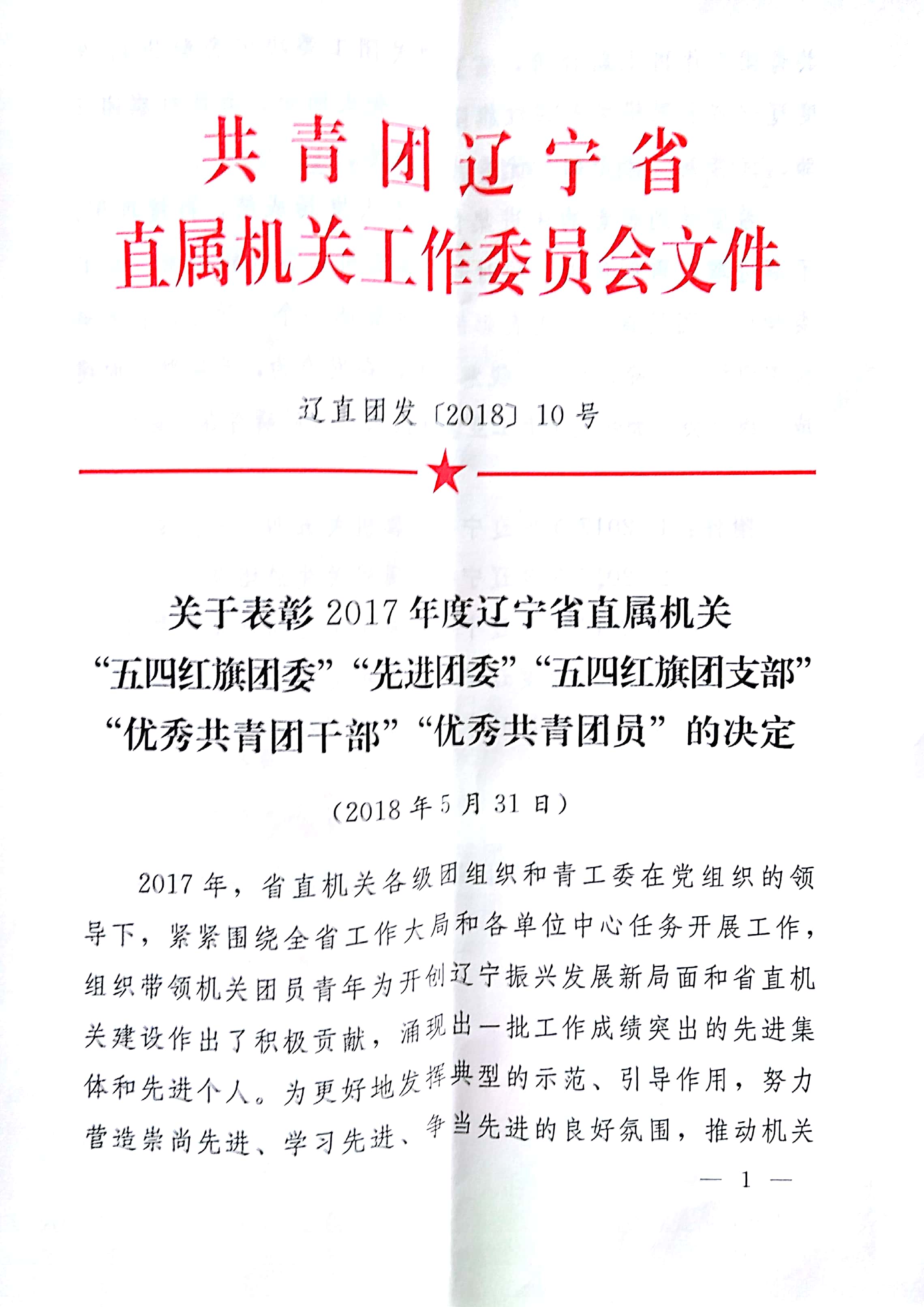 我院团委荣获2017年度辽宁省直属机关“五四红...