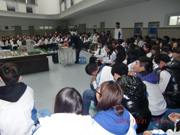 2013年10月21日,房地产协会第一届模拟售楼大赛在城建学院教学楼A区一楼大厅隆重举行。本次活动出席的嘉宾有房地产研究中心石海均主任,管理系牛佳书记,梁鸿颉副主任,赵智博副书记等房研中心各位老师,他们对此次活动做了细致指导。