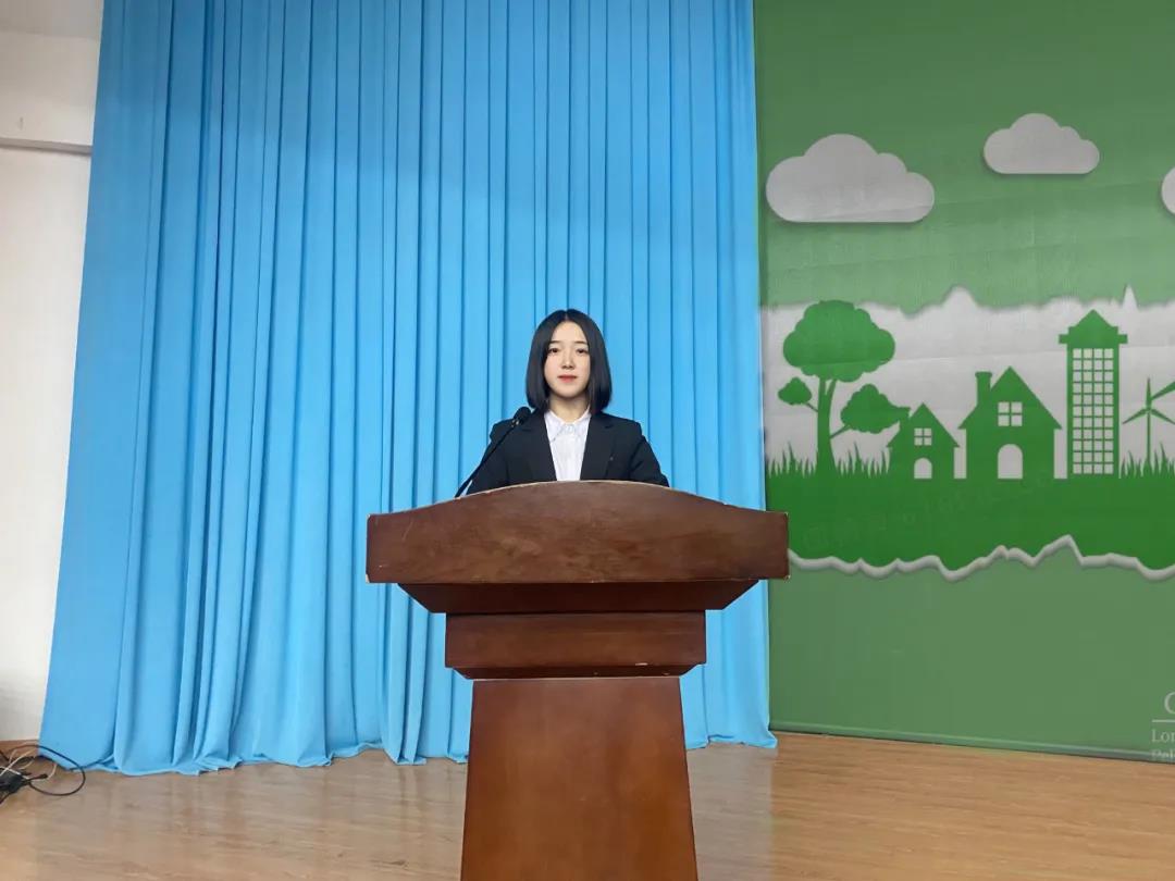 讲座开始之前,由院青年志愿者协会代表于雅楠上台发言,介绍本次讲座的主讲人——20室内2班李成林。本次讲座的主要内容是环境保护和志愿者精神。