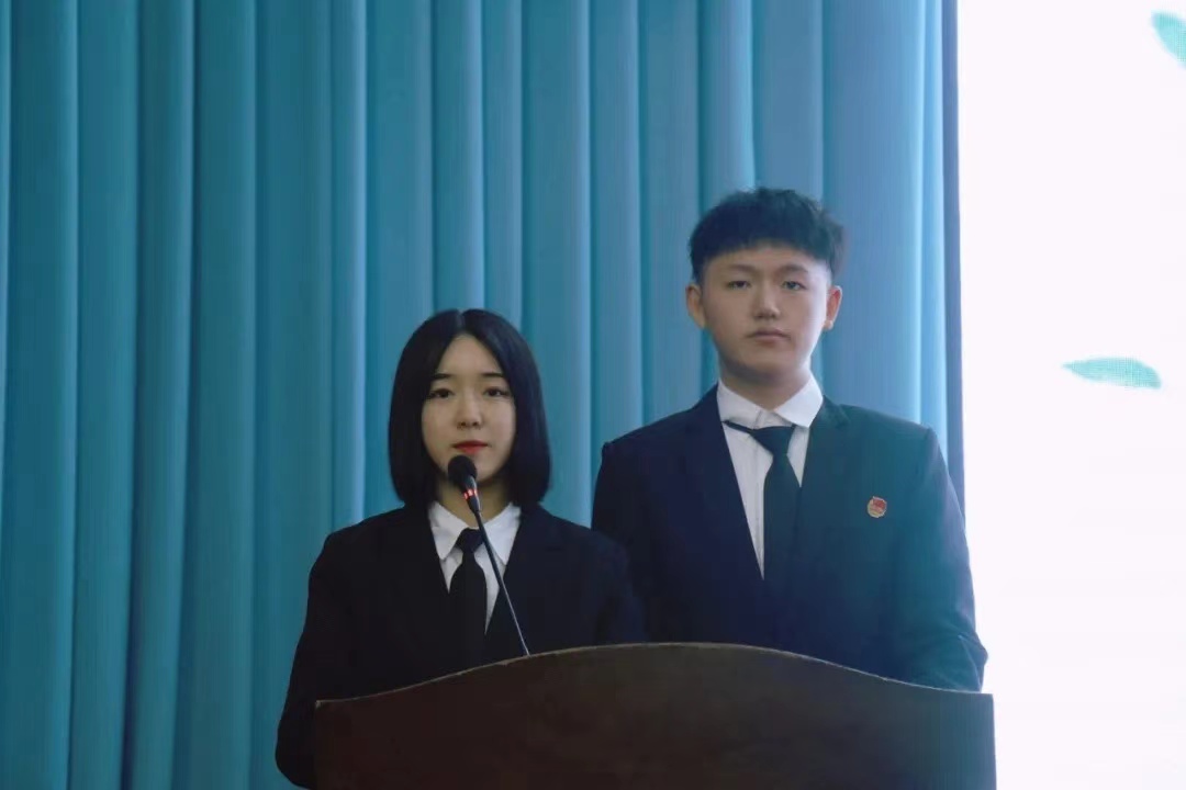 在讲座开始之前,由青年志愿者协会于雅楠和董书奇上台致辞。