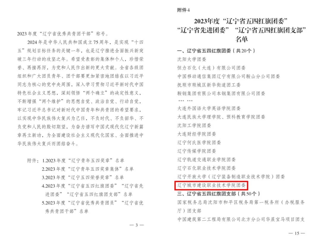 近日,辽宁省人力资源和社会保障厅、中国共产主义青年团辽宁省委员会、辽宁省青年联合会下发《关于表彰2023年度“辽宁青年五四奖章”“辽宁五四荣誉奖章”、省“两红两优一先”的决定》(辽人社函〔2024〕99号),我校团委在本次表彰中荣获“辽宁省先进团委”称号。