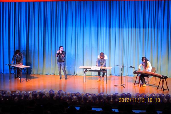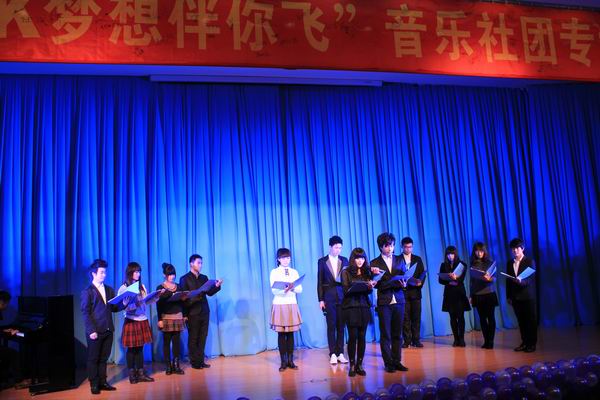 本场音乐专场晚会以DK乐队作为开场,一曲《离歌》、《死了都要爱》为晚会掀起首轮高潮,二胡独奏《赛马》、英文歌曲串烧、藏族学生演唱的《神奇的九寨》等一首首经典歌曲,经过音乐社团完美的演绎或热闹欢腾、喜气洋溢;或委婉流畅,淳朴柔美;或悠扬清亮、缥缈缠绵。除此之外,用古筝和笛子伴奏的书法国画表演《中国风》、钢琴伴奏诗朗诵《梦想现实》、歌舞剧《父亲Rap》、搞笑舞蹈《江南style》等节目以多元化的形式展现了音乐的无限张力。同学们在欣赏曼妙音乐的同时,也感受到了中国传统文化的独特魅力,会场掌声、笑声、惊叹声此起彼伏。