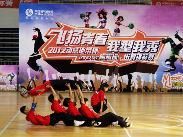 11月17、18日,我院参加了在沈阳航空航天大学体育馆举办的“飞扬青春,我型我秀”2012动感地带杯辽宁省大学生啦啦操、街舞锦标赛,本次比赛共有25个学院、34支代表队参加比赛。