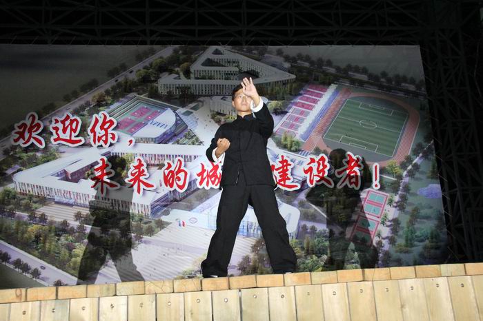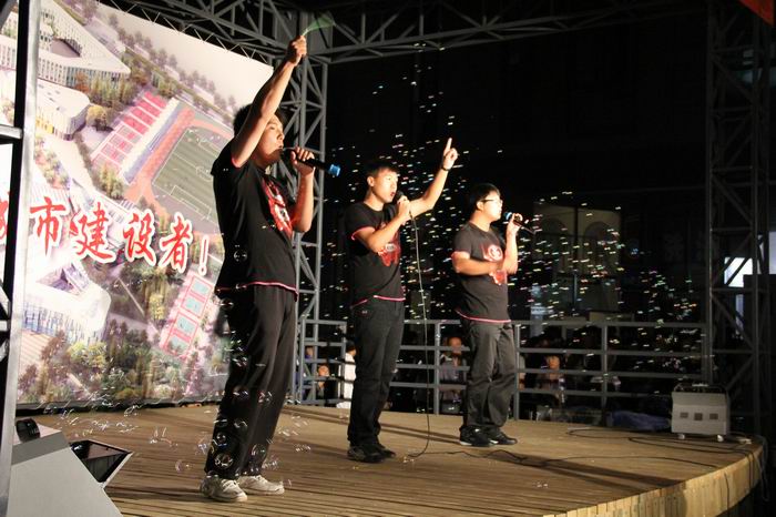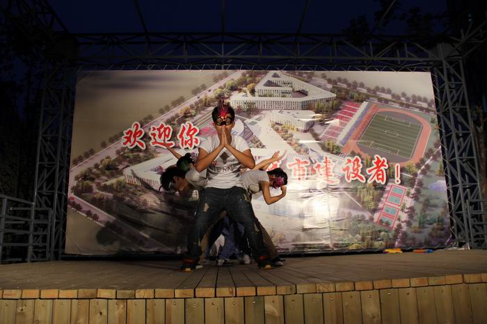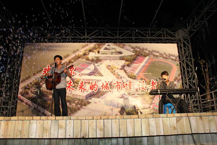 9月7日晚6时,露天舞台热闹非凡,我院“金色约定 绽放未来”迎新晚会在此举行。院党委书记沙茂伟、院长陈晓军、院党委副书记冯利以及各系党支部书记、部分2011级班主任与2011级新生一起观看了晚会。