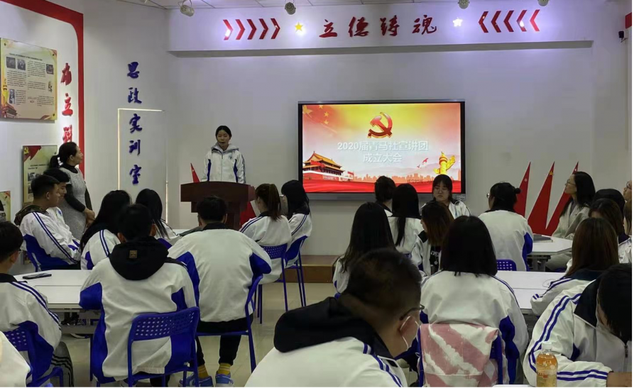 为深入贯彻落实党中央关于在全党开展党史学习教育的决策部署和省委工作要求。辽宁城市建设职业技术学院2020级青马学生宣讲团成立大会于2021年4月14日在思政实训室A341举行。团委书记齐振军、团委副书记岳兵、青马学生宣讲团指导教师邱爽以及青马学生宣讲团成员参加此次活动。