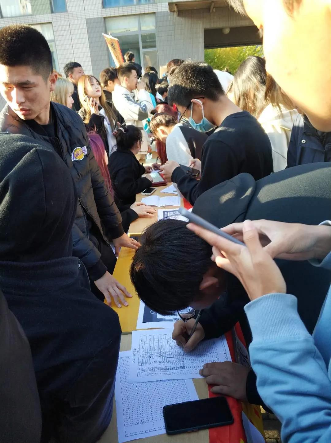 舞台上的表演美轮美奂,让人拍手称快,2020级新生们怀着极大的好奇与热情穿梭于纳新场地之中,他们积极了解各个社团,提出自己的问题。现场的学长学姐们也耐心地向驻足的新生们解答相关问题。