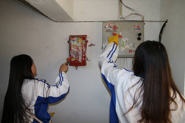 抵达府北社区后,志愿者便对楼道中的小广告和杂物自行分组进行清洁工作。大家通过一上午的时间辛勤工作,为社区居民营造了一个整洁、舒适的生活空间,得到社区居民的一致肯定和好评。