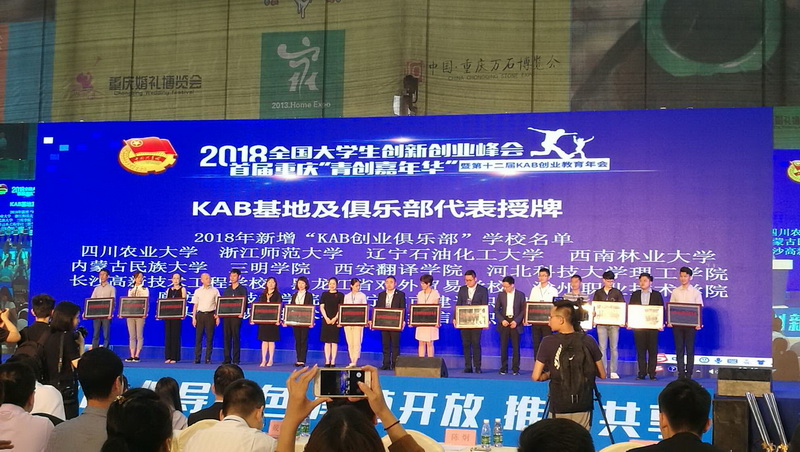 4月23日至24日,2018年全国大学生创新创业峰会暨第十二届KAB创业教育年会成功举办。我院被中华全国青年联合会、中华全国学生联合会、国际劳工组织命名为大学生KAB创业教育基地,我院KAB创业俱乐部被授权开展KAB创业活动。